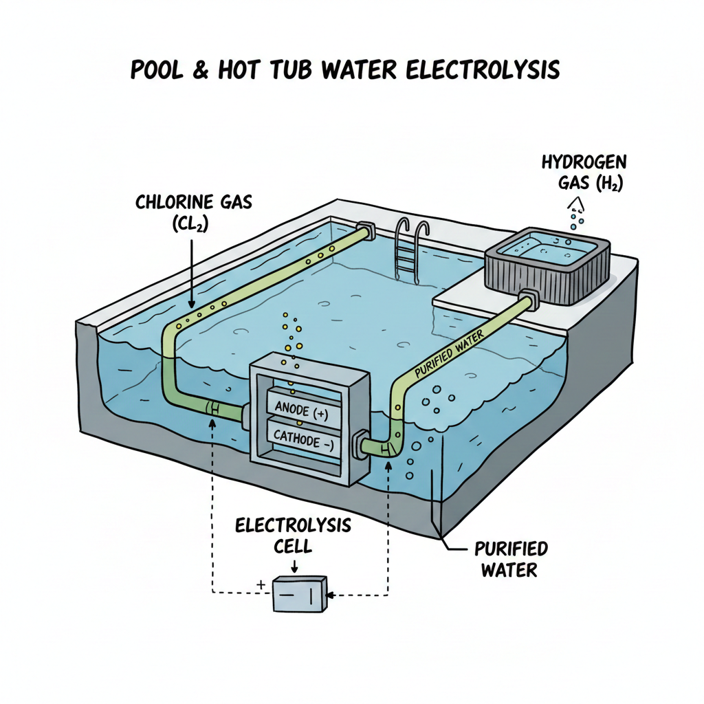 Η ηλεκτρόλυση άλατος είναι μια φυσική και αυτόματη μέθοδος απολύμανσης του νερού, η οποία αντικαθιστά την παραδοσιακή χρήση χλωρίου σε ταμπλέτες ή κόκκους. Είναι ιδιαίτερα δημοφιλής σε πισίνες και υδρομασάζ λόγω της φιλικότητάς της προς το δέρμα και τα μάτια.